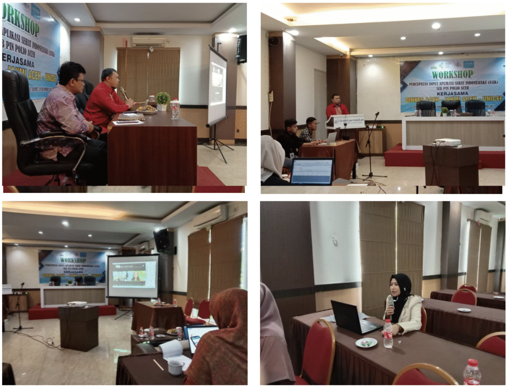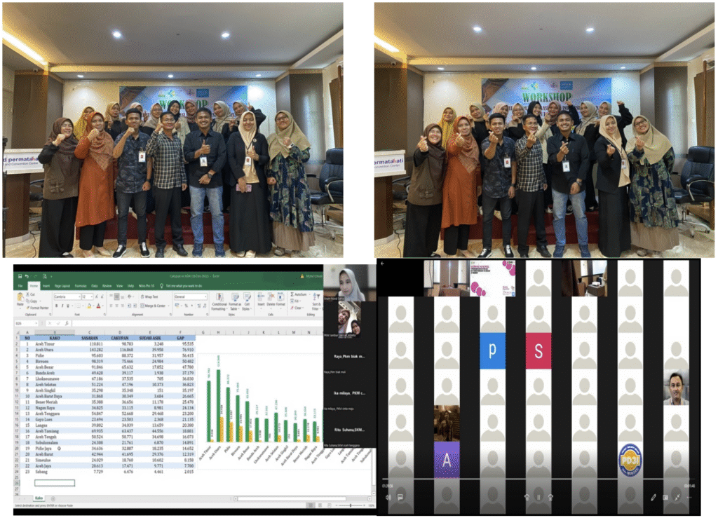 Untuk mendukung kelancaran pelaporan, serangkaian kegiatan workshop telah dilaksanakan. Workshop pertama yang berlangsung pada 29 Desember 2022 di Banda Aceh bertujuan meningkatkan pemahaman tenaga kesehatan dan enumerator dalam penggunaan aplikasi ASIK, membangun koordinasi dengan petugas lapangan, serta mengidentifikasi hambatan yang muncul dalam proses imputasi data. Kegiatan ini berhasil meningkatkan kepercayaan antara enumerator dengan tenaga kesehatan, sekaligus memastikan data yang dilaporkan lebih rapi, bersih, dan sesuai format yang dibutuhkan.